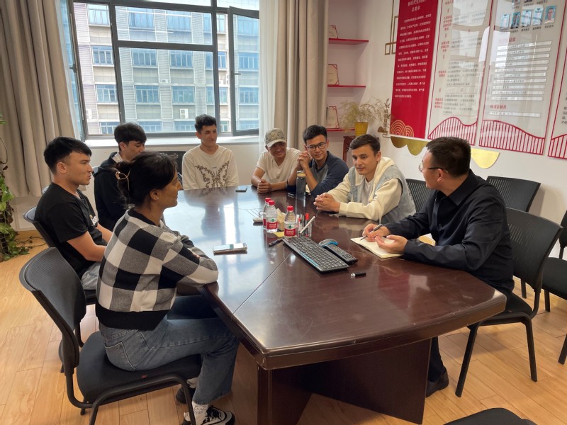 6月5日,在机械学院410会议室,学院团委书记李文达与少数民族学生关于职业发展和就业目标这一话题展开了激烈的讨论。来自2020级的麦麦提艾力、麦提图尔荪、阿不都沙拉木3位同学,即将升入大四,面临着就业问题,针对就业地点、就业行业、就业单位、工作岗位等话题进行深入探讨。
